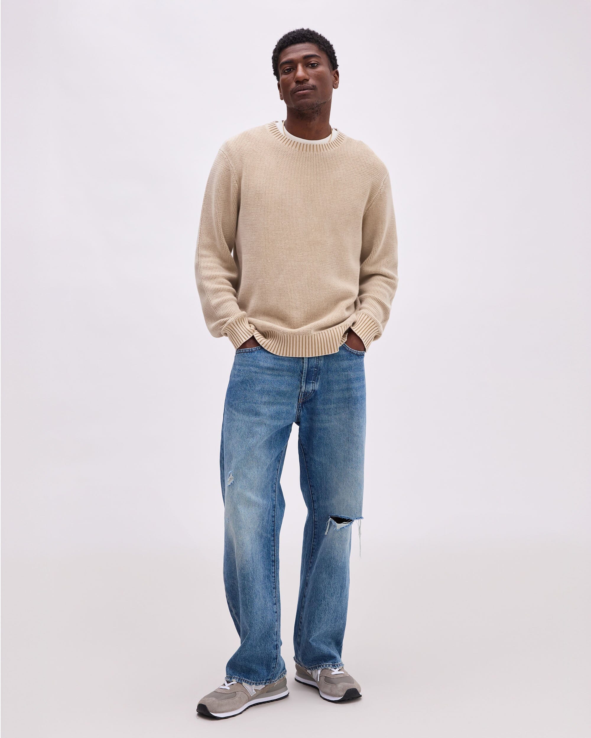 Mens Dune Open Knit Sweater - Cotton Sweater Knit - Khaki