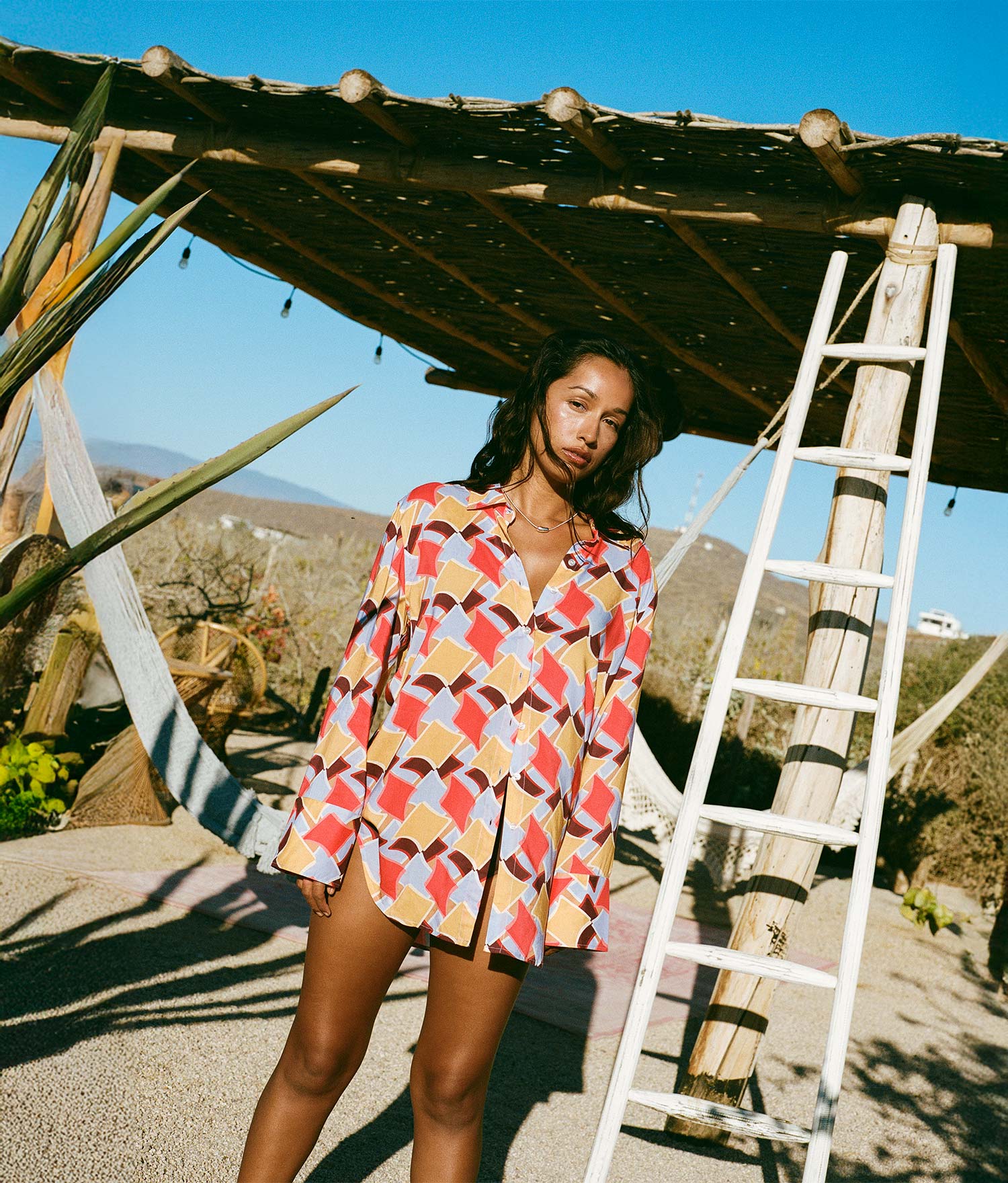 A classic shirt silhouette, the Coastal Button-Up is an effortless cover-up with a collar, long sleeves, and a relaxed, flowy fit. Simple yet statement-making, you can wear it solo or with the Coastal Shorts to make a matching set