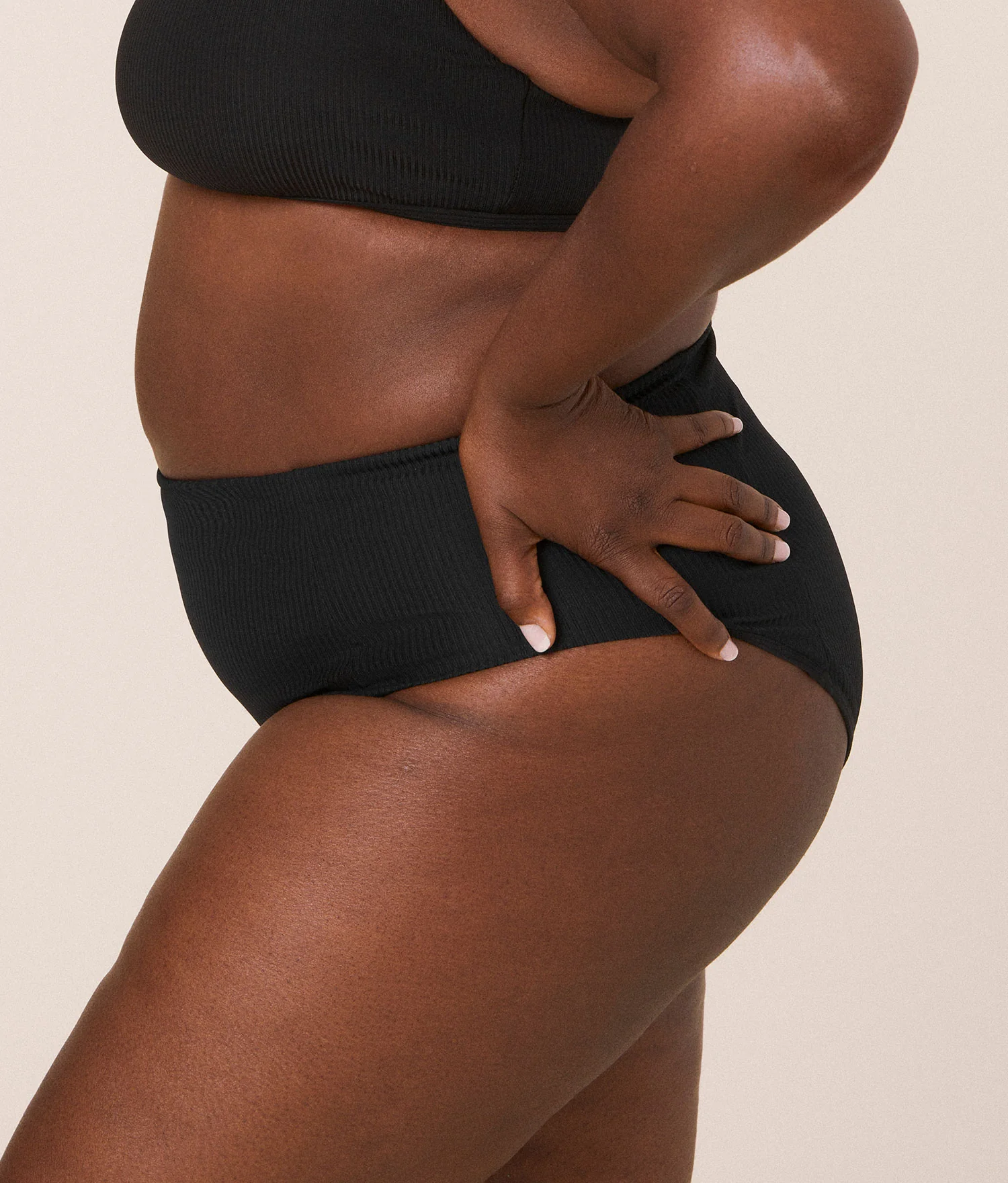 The High Waist Cheeky Bikini Bottom - Eco Ribbed - Black