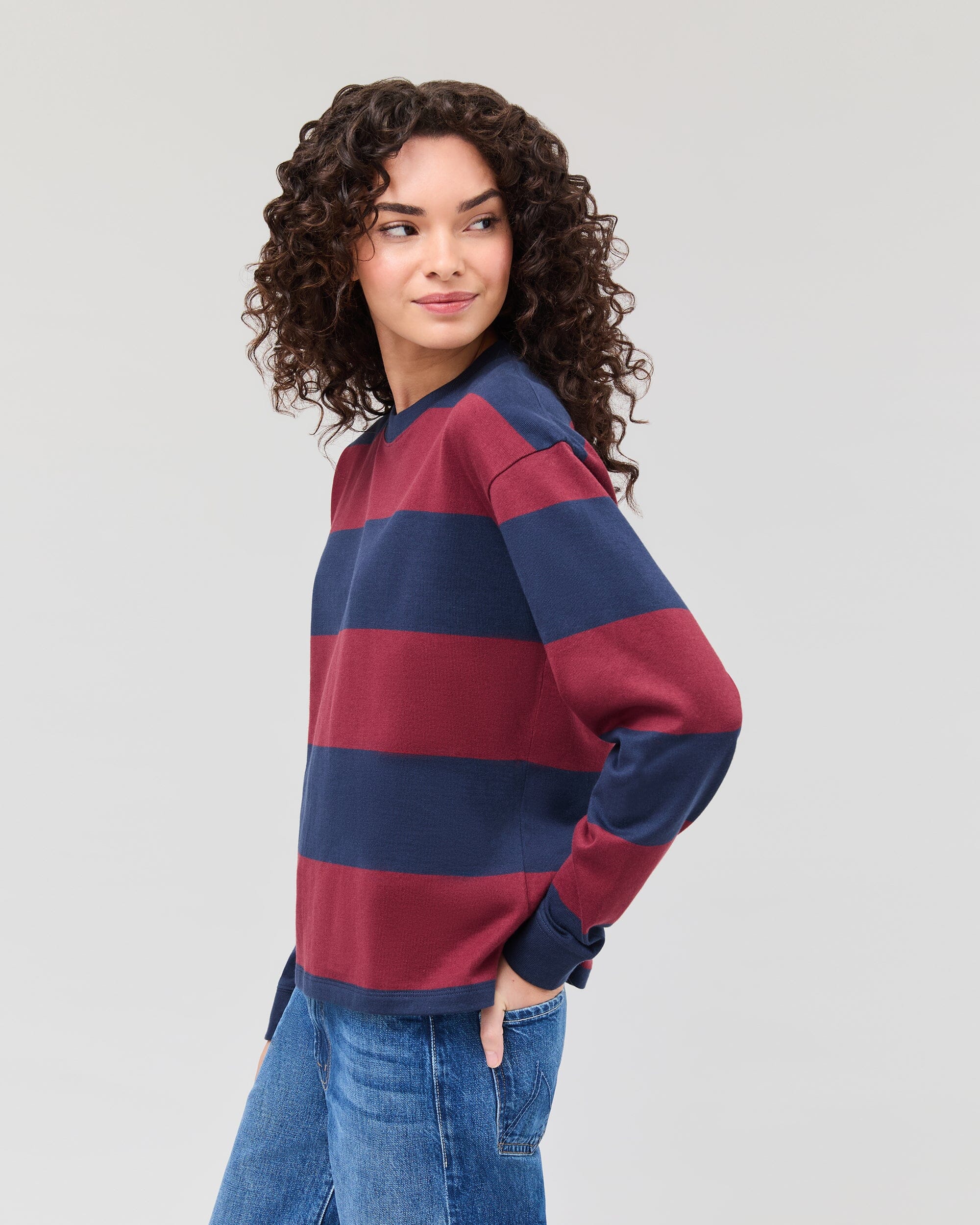 Womens Beefy Stripe Cotton Pullover - Pima Cotton Jersey - Maroon/Navy Stripe