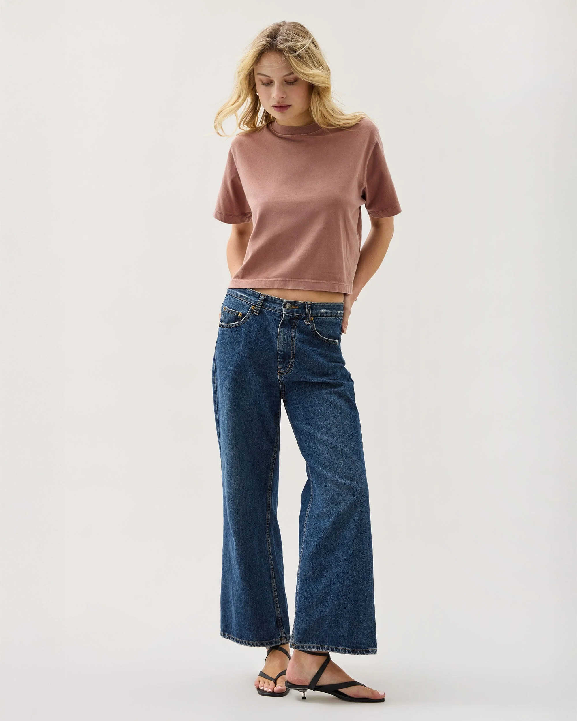 Womens Relaxed Crop Tee - Pigment Dye Jersey - Russet